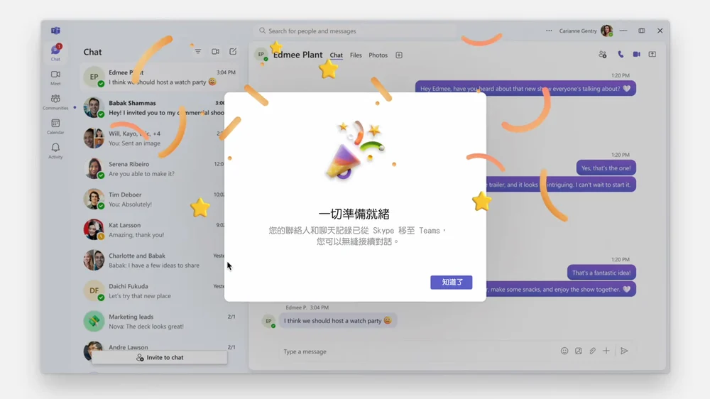 - 同步后的通讯方式: 在Teams中,所有已同步的Skype联系人将与Teams联系人混合显示。在聊天窗口中,用户可以直接通过点击Skype联系人名字来开始对话,无论是文字聊天、语音通话,还是视频通话。Skype联系人和Teams联系人可以无缝通信,不受平台限制。通过Teams的统一平台,用户能够轻松与所有联系人保持联系,而不需要频繁切换到Skype应用。